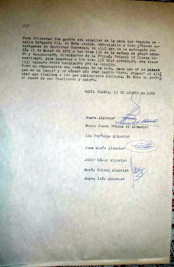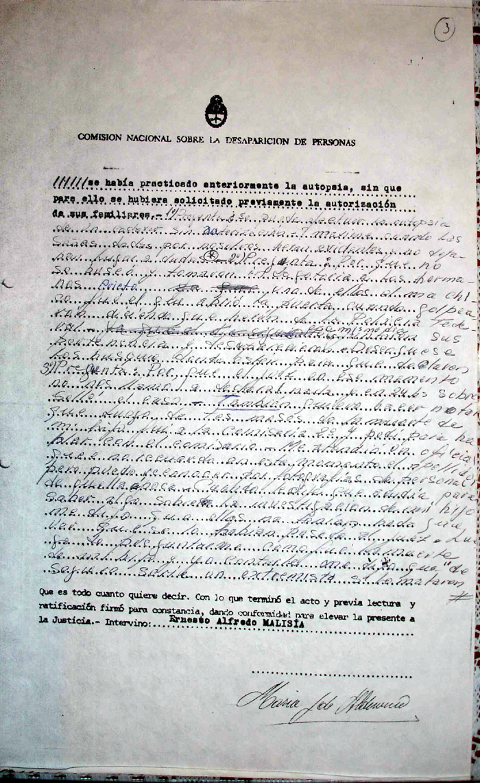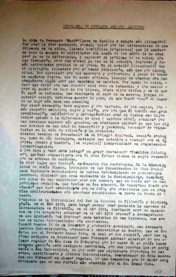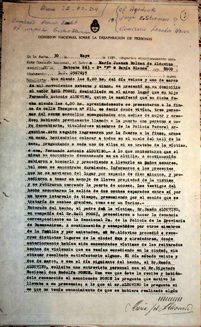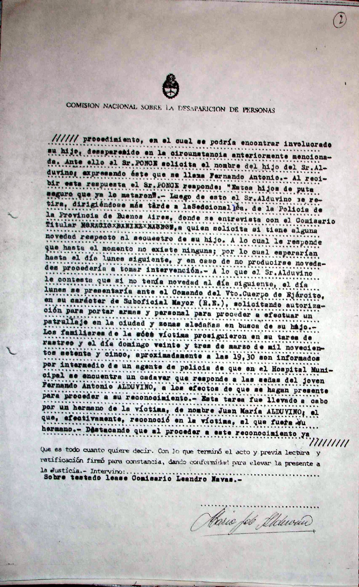 Testimonio ante la CONADEP sobre el secuestro/muerte de Fernando