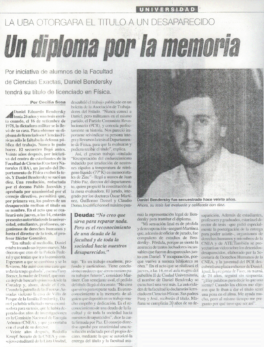 Daniel era físico. Había hecho su investigación sobre la vida útil de la usina atómica de Atucha Daniel fue secuestrado poco después de publicar su investigación, a la que nunca llegó a defender. Años después de su desaparición, al llegar la democracia, le otorgaron el doctorado póstumo.