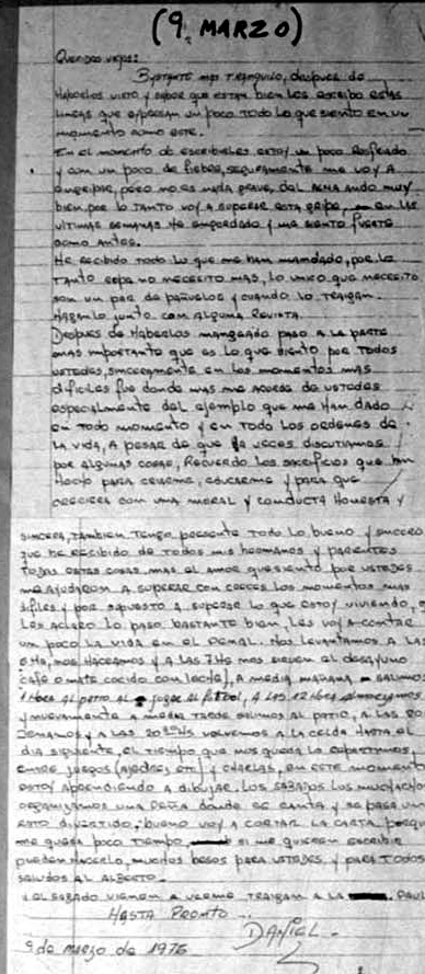 Octubre, 2009Papá, ayer cuando estaba en la plaza esperando para empezar a marchar se iba sintiendo el calor, no el de la calle, sino de los compañeros, nos corrían gotas de sudor, pero eran gotas de sudor llenas de tantos años de trabajo, de tantos años de espera.