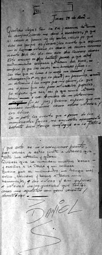 Daniel fue remitido a los subsuelos de la Jefatura de Policía de Rosario, a las dependencias del Servicio de Informaciones, en la ochava de San Lorenzo y Dorrego, donde fue torturado.