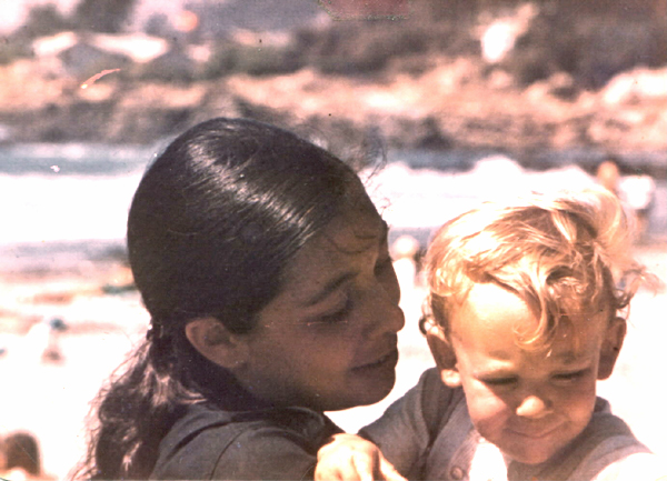 En la playa con su hermano Gastón