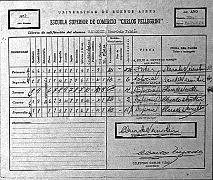 Un comentario de Mauricio en una prueba escrita en la Escuela "Carlos Pellegrini", donde estudiaba, sobre la literatura de Omar Kayyam